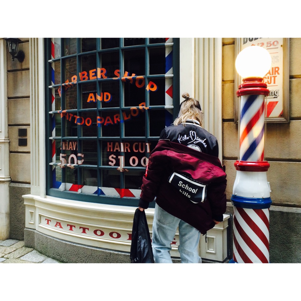 「school kills」はhyein seoのdenim jacketに付いていたものを自分でカスタムしたよ♡