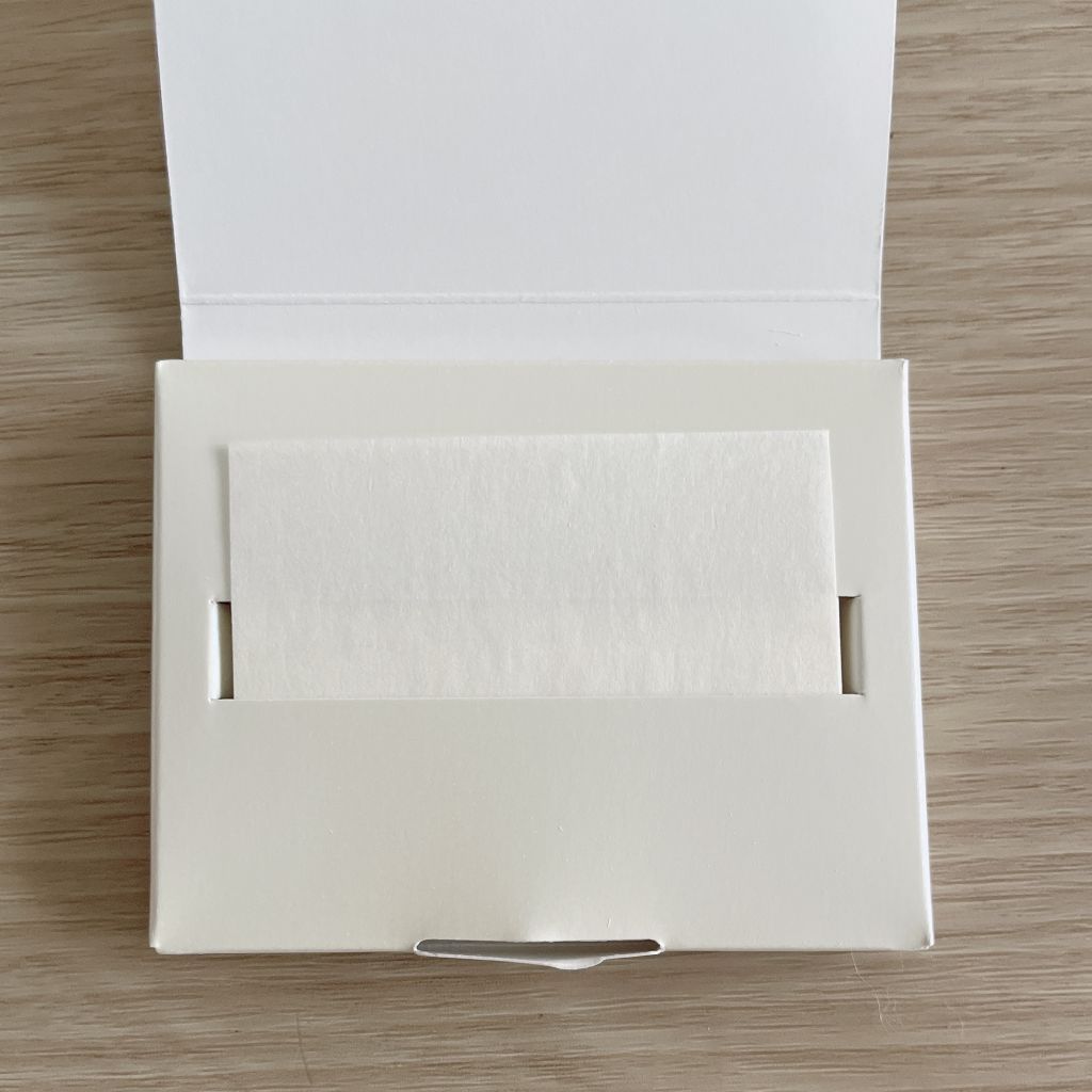 超微粒子パウダーがついた紙をあぶら浮きや、お化粧直しとして気になった時に抑えるだけで簡単にお直しできるアイテム♡