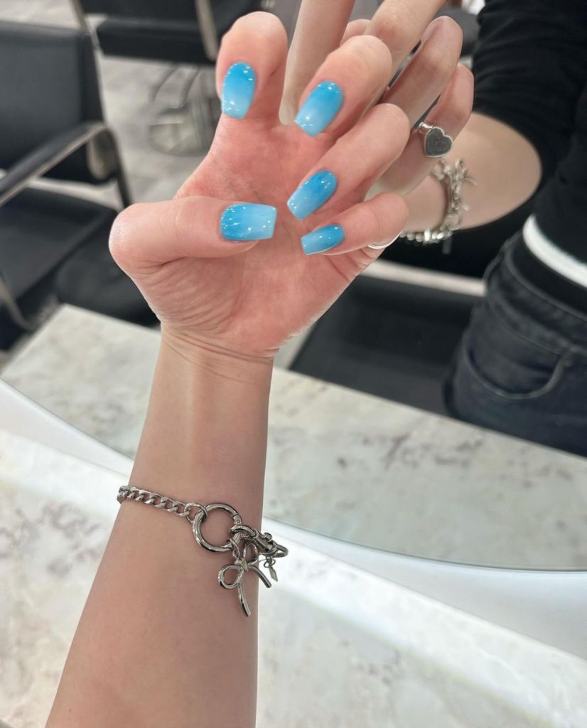 4月に水色にした時もグラデーションだったので、今回はチグハグにしてもらいました。