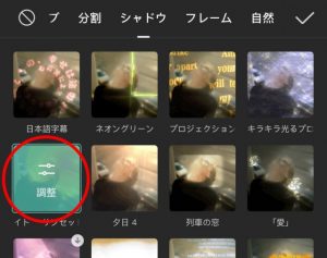 ⑤選択するとこのように「調節」の表示が出てくるのでそれを選択して、エフェクトの位置や強さなど微調整してください