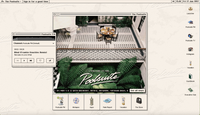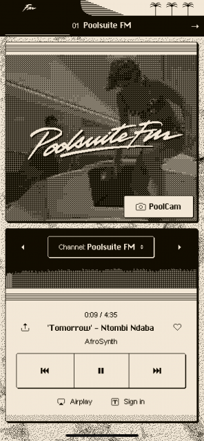 「Poolsuite FM」のチャンネルを選んだら、プールサイドでかかっているような音楽