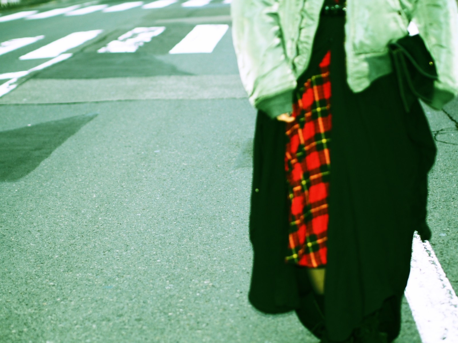 チェックスカートを全面に見せずに
