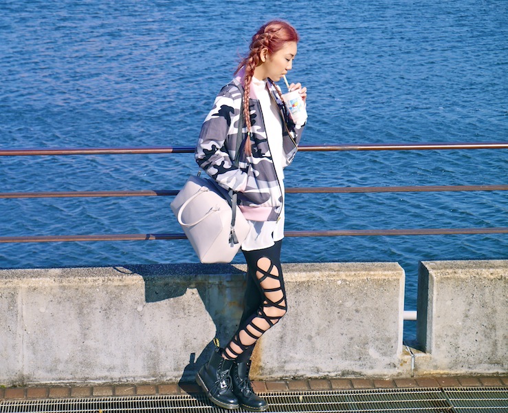 ジャケットも、カモ柄でちょっとストリートなアイテムを選びました。