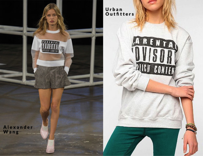 Another one from urban Outfitters and Alexander Wang. I guess this Parental Advisory motifs were used for designs for ages, even before Wang used it in his collection, but I am guessing Urban Outfitters didn’t just coincidently use this motif after Wang on a WHITE sweater. No no.