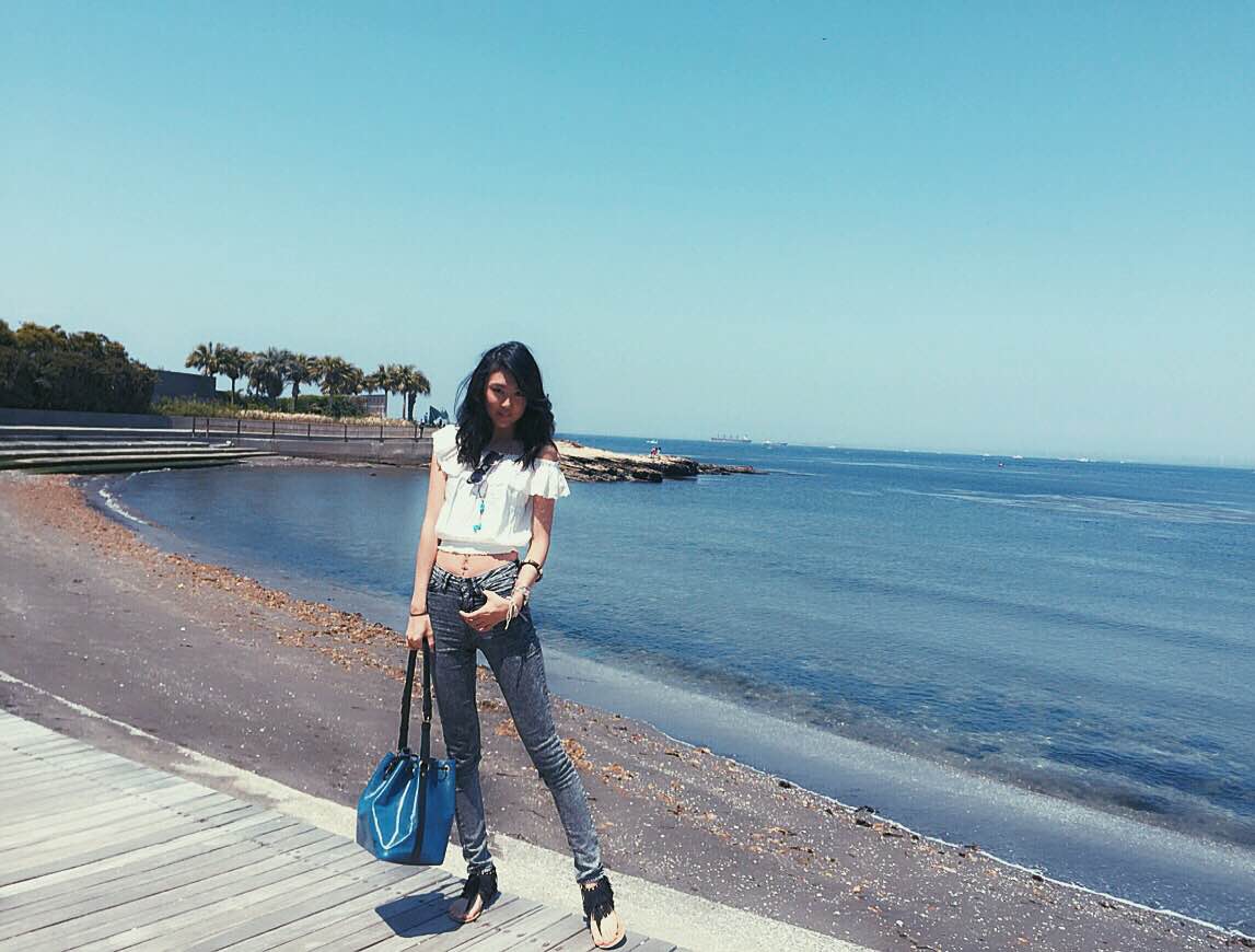トップスで隠れる範囲がとても狭いので(笑)、今日はハイウェストのデニムと合わせましたー。もう少し本格的に夏が始まって暑くなってくると、これをスカートに変えたりハイウェストのショートパンツと合わせればOK!なんにせよ、短めトップスには基本的にハイウェストが鉄板。