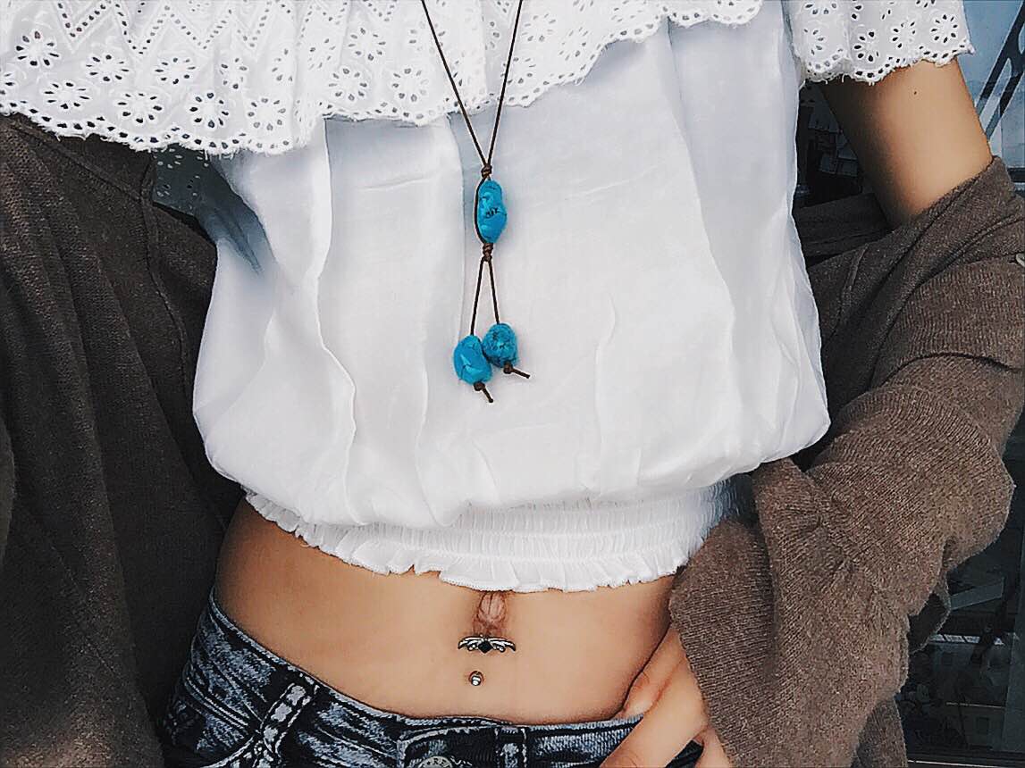 Here is a story with me and my belly piercing… I have a huge belly button for some reason and I hated it. People really makes fun of it when they see it which I think is super weird but I still wasn’t so proud of my belly button. When I was 17 years old, I realized that having a belly piercing will cover up my ugly belly button! So I went to the doctor and got it. Ever since then I started wearing piercings with huge charms on so that it will hide my belly button, but then because I wore it 24/7, it almost ripped my skin. I took it off right before it looked like it was going to happen and so I had to give up on that piercing but I got another one on the bottom side of my belly. Long story and totally off-topic but I felt like sharing it with you lol
