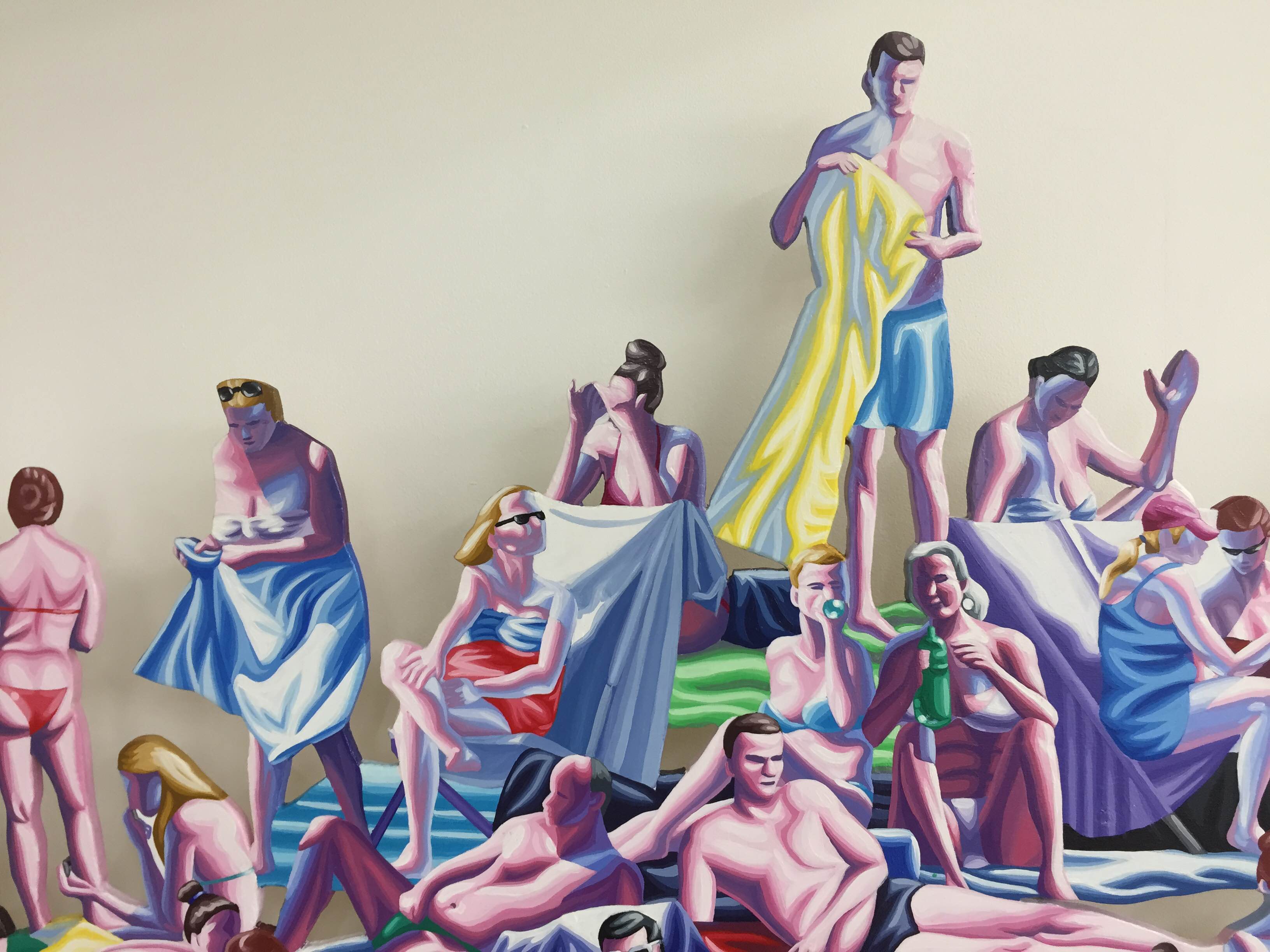 I fell in love with her surreal, fun art. I love the concept, and I also felt that her work is not all about the bright and fun side of urban paradise but also depicts the dark side of people…. do you feel it as well?