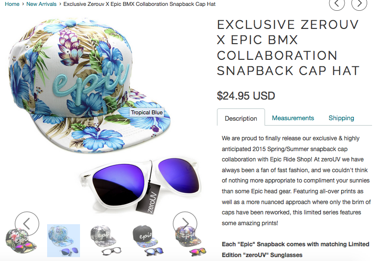 They recently started a collaboration line where you can get a snapback and a zerouv sunnies in a set for 25 dollars!!