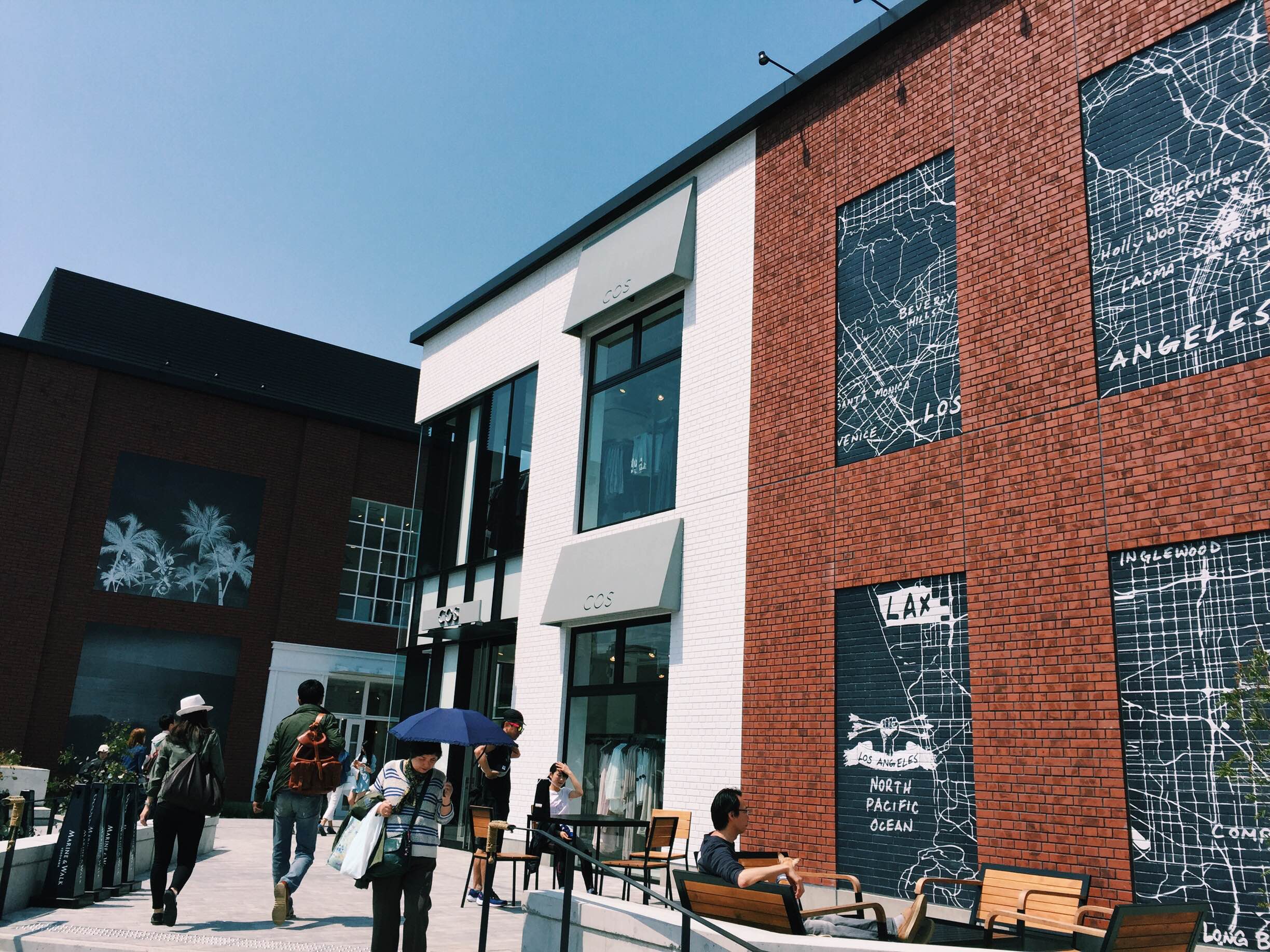 Marine’Walk is located in between World Porters and Yokohama Red Brick Warehouse, right in front of the beautiful ocean of Yokohama. I think the whole place is inspired by LA…… most of the shops are LA based brands or has a surf, west-coast vibe. Fred Segal for example! They also have COS, the family brand of H&M, Steven Alan, Denham, etc.