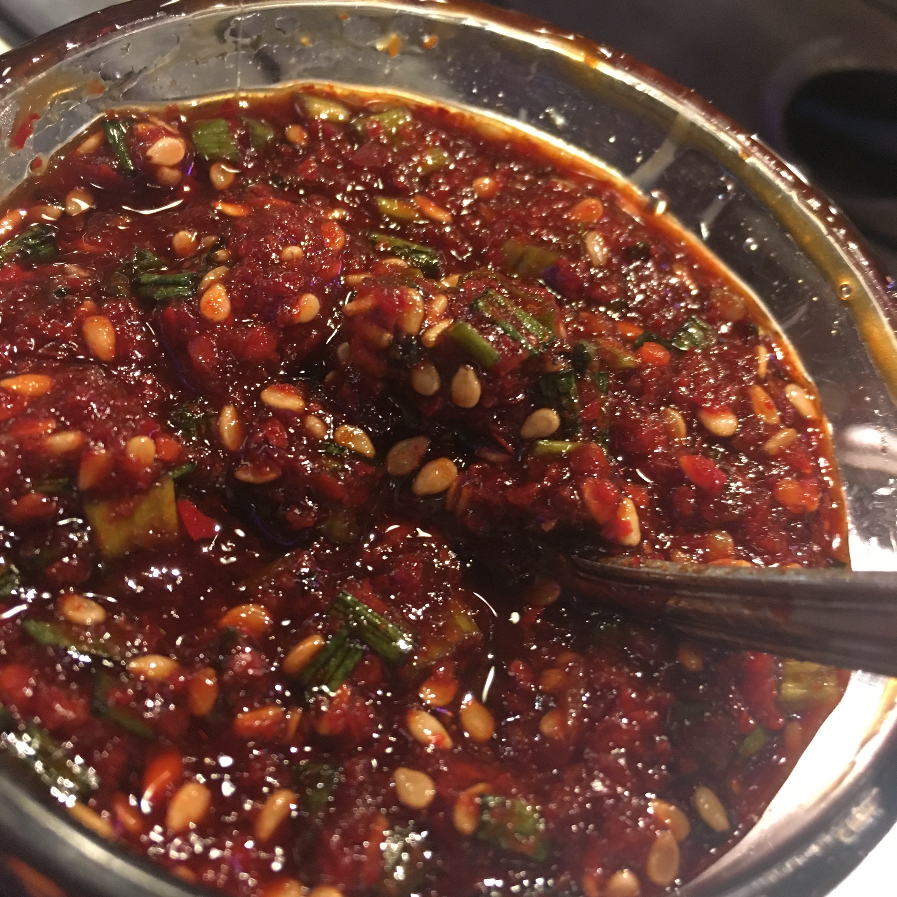 この特製のピリ辛つけダレをつけて