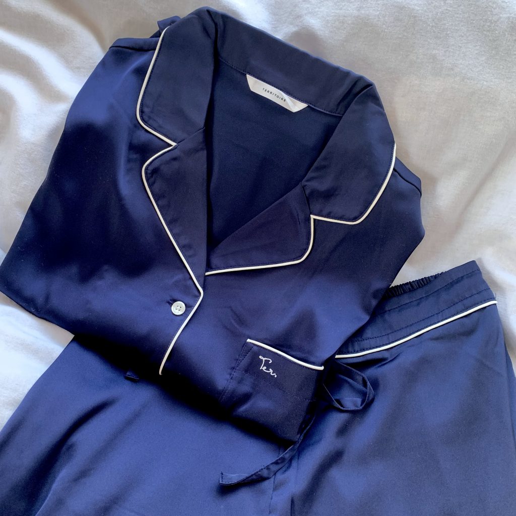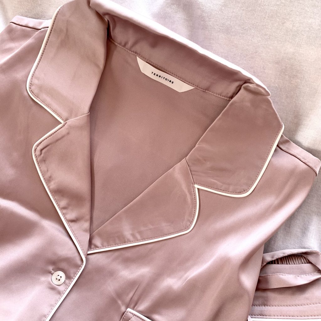 サテン調のセットアップパジャマを色違いで購入♡環境に優しい素材でつくられているのも魅力! #ECO #PAJAMAS #SLEEPWEAR