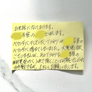 夜遅めの時間に帰宅すると、何やらドアに張り紙が