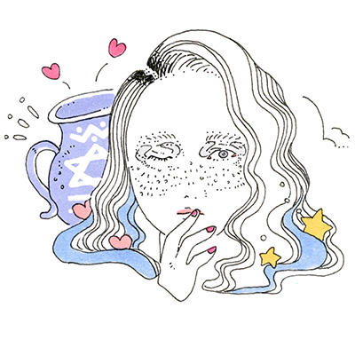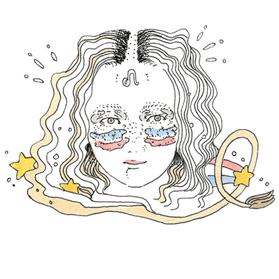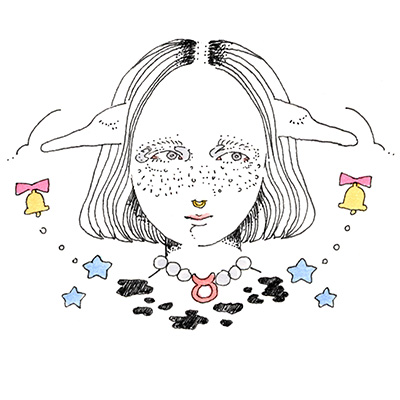 ゼブラ柄にキラキラブーツにサングラス、少女マンガの主人公みたいなファッションがいい。 Tシャツ¥23,000(J.W. ANDERSON/リステア)、ゼブラ柄スカート¥5,500(BUBBLES 原宿/バブルス ハラジュク)、とうがらしモチーフネックレス¥18,800(DIESEL/ディーゼル ジャパン)、左耳にしたピアス¥7,000、右耳にしたピアス¥9,000(共にTHROW A KISS/オープニングセレモニー)、バッグ¥55,000(M MISSONI/オンワードグローバルファッション)、サングラス¥4,600(CHEAP MONDAY)、ブーツ¥42,000(G.V.G.V./共にケイスリー オフィス)