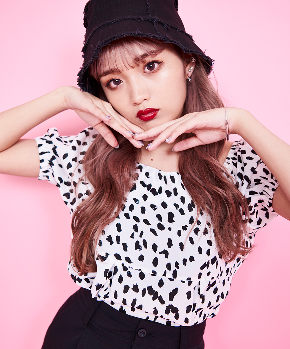 オフショルダーとしても着用できる2way仕様。アニマル柄のようなエッジの効いたトップスは、コーディネイトの主役として取り入れて♡