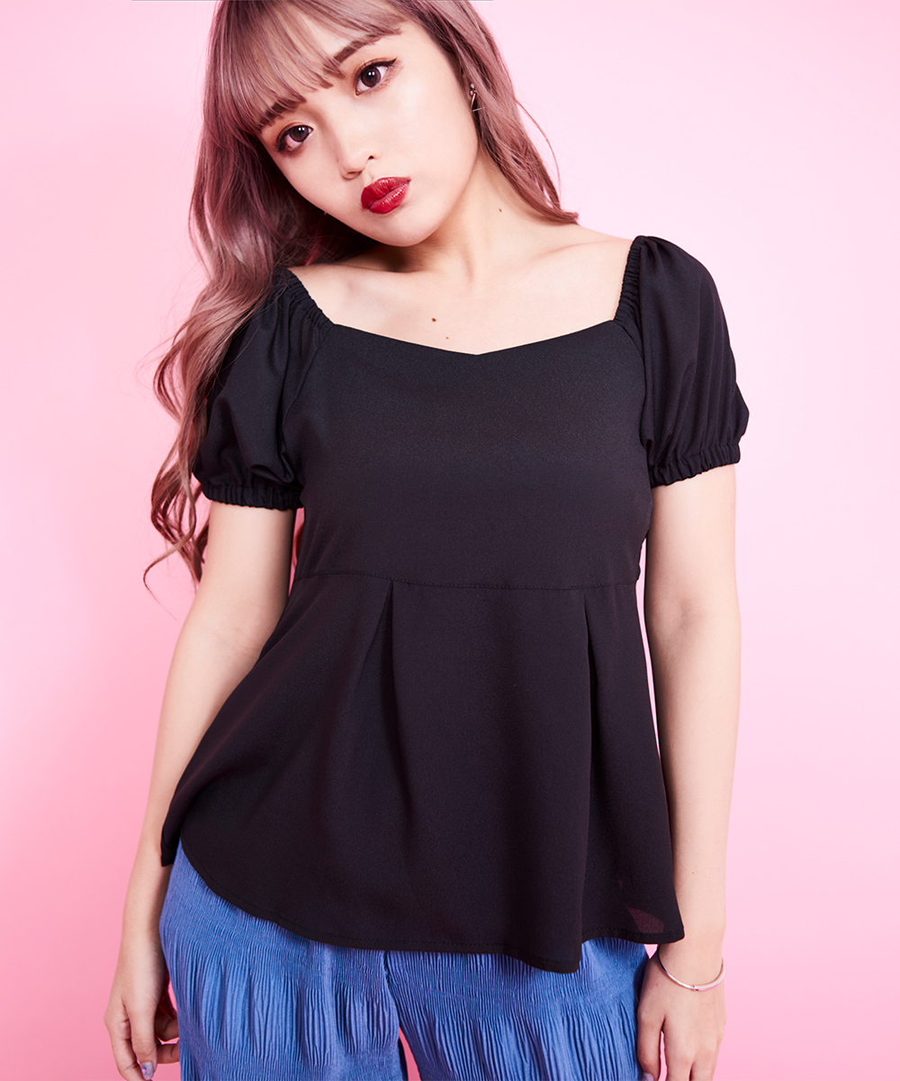 オフショルダーとしても着用できる2way仕様。大人っぽく着こなせるブラック。カラーボトムと合わせて個性を発揮!