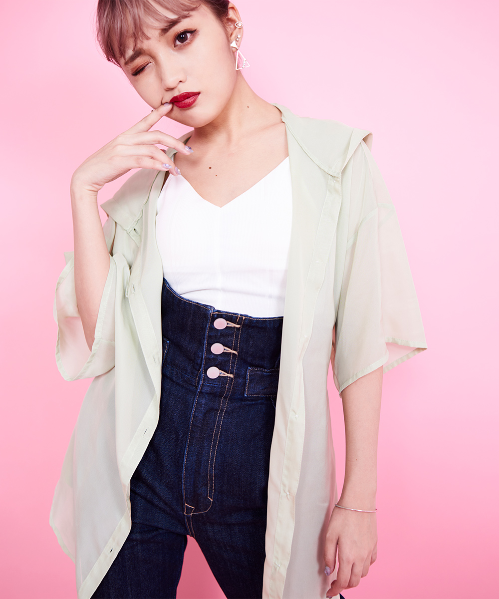 シアー感のあるホワイトシャツは、これからの季節におすすめ。カーディガン風に着てもよし、1枚でも決まる万能シャツ。