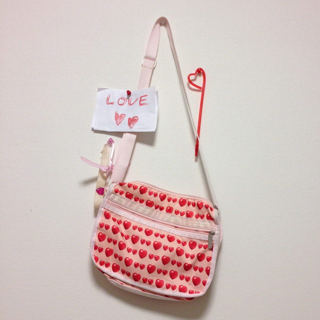 あいりん/リサイクルショップで手に入れたのは、ラブリーなハート柄バッグ。