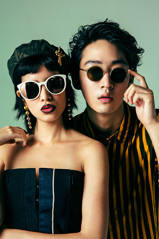 サングラス¥51,500/MYKITA(マイキータ ジャパン)、シャツ¥29,800(ROBERT GELLER/ヴィア バス ストップ ミュージアム)