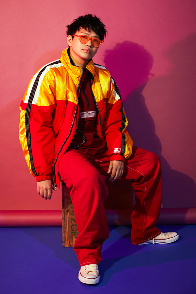ブルゾン¥8,325(PINN NAP/ピンナップ)、ジャケット19,440(Jieda/キクノブ)、ボトムス¥31,200(Eytys/エドストローム オフィス)、サングラス¥20,000(SUPER BY RETOROS UPERFUTURE/ヌビアン 原宿)、シューズ¥5,800(CONVERCE/コンバースインフォメーションセンター)