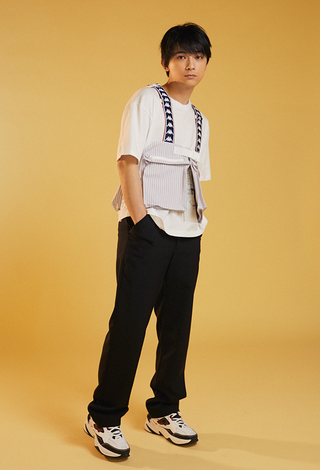 チェストバッグ¥参考商品(CHRISTIAN DADA×Kappa/クリスチャン ダダ)、Tシャツ¥13,000(semoh HT/ビューローウエヤマ)、パンツ¥40,000(KUDOS/エムエーティティ)、シューズ¥11,000(NIKE SPORTSWEAR/ナイキ カスタマーサービス)