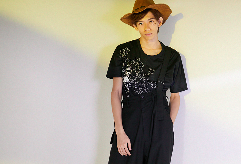 トップス¥30,000、パンツ¥46,000(共に Ground Y/ヨウジヤマモト プレスルーム)、ハット¥23,000(STETSON/ステットソン ジャパン)、ソックス¥1,800(CHICSTOCKS/ノーデザイン)、シューズ¥13,637(COS/コス 銀座店)