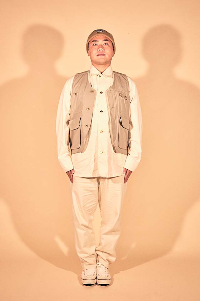 ベスト14,300(Marmot/デサントジャパンお客様相談室)、ジャケット¥16,500、パンツ¥8,800(共にLee/リー・ジャパン カスタマーサービス)、ビーニー¥4,950(HELLY HANSEN/ヘリーハンセン原宿店)、スニーカー¥7,700(CONVERSE/コンバースインフォメーションセンター)、ソックス スタイリスト私物