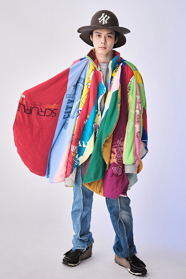 アウター¥300,000、ハット¥110,000(共にRequaL≡)、スニーカー¥33,000(NON TOKYO/全てエスティーム プレス)、スウェット¥17,600(9M/久山染工)、デニム¥35,200(JOHN MASON SMITH/ヘムト ピーアール)
