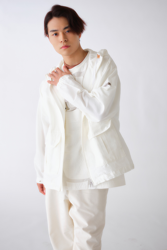 パーカー¥31,900、パンツ¥18,700(共にTHE NORTH FACE PURPLE LABEL/ナナミカ 代官山)、スウェット¥96,800(A.A.SPECTRUM/アルファ PR)、中に着たTシャツ¥4,290(Wrangler/リー・ジャパン カスタマーサービス)