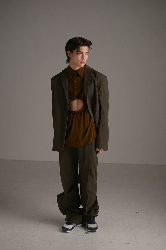 ジャケット¥135,300、シャツ¥94,600、パンツ¥110,000(すべて参考価格)(Y/PROJECT/ザ・ウォール ショールーム)、スニーカー¥15,400(ASICS/アシックスジャパン株式会社 お客様相談室)