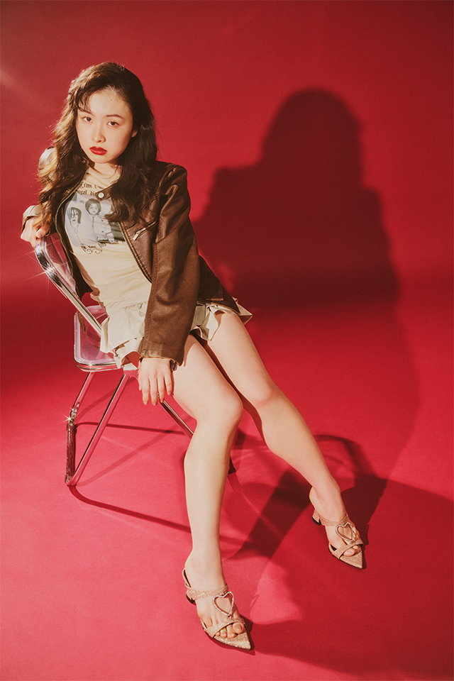 ジャケット¥53,969(2000ARCHIVES/ムシンサ グローバル ストア)、トップス¥26,400(emary)、スカート¥9,990(ナディア フローレス エン エルコラソン)、サンダル¥72,600(YIE YIE/ショールーム シャルメール)