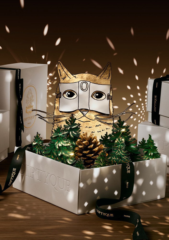今回登場するアイテムは、まるでおとぎ話から抜け出してきたかのように、ゴールドのモチーフとシュールなイラストがあしらわれている。ボックスとギフト用ラッピングペーパーは、光と詩情に満ちたおとぎ話の貴重なページに。ホリデーシーズンのワクワクをDiptyqueの製品と過ごして♡ |