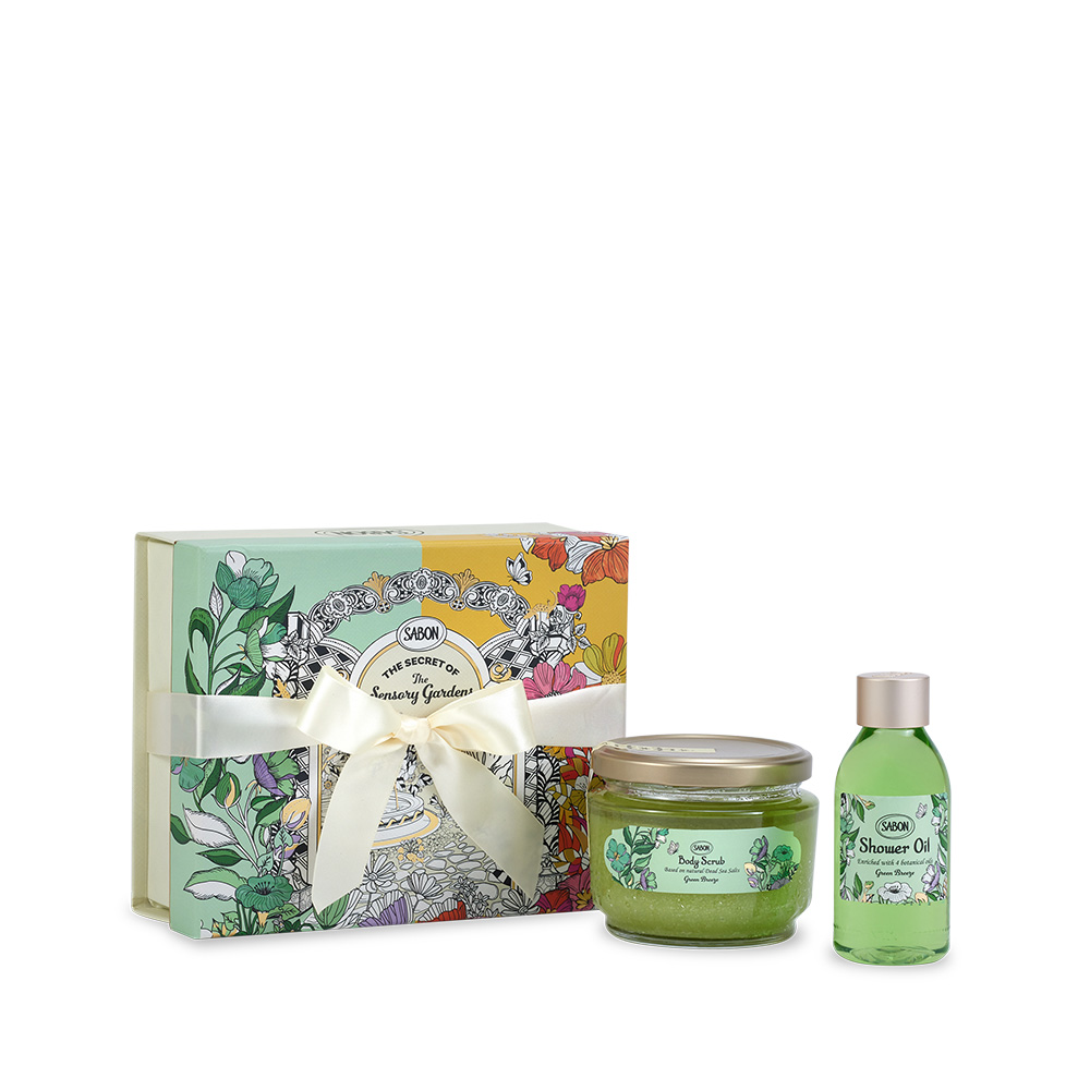 ボディケア コンプリートキット グリーン・ブリーズ ¥14,300(シャワーオイル 300ml、ボディスクラブ 320g、シルキーボディミルク 200ml、ハンドクリーム 30ml、ギフトボックス)