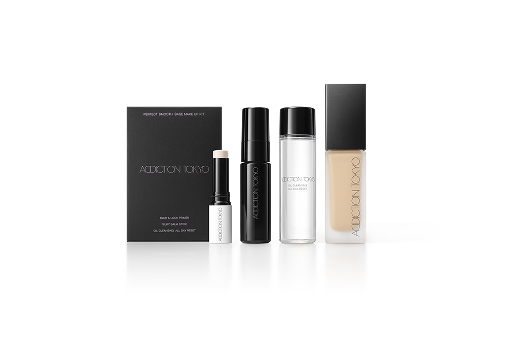 パーフェクトスムース ベースメイクアップ キット ¥8,800~¥10,450(ブラー&ロック プライマー 15g、シルキーバームスティック 3g、オイルクレンジング オールデイリセット 35mL、アディクション ファンデーション3製品からセレクト)