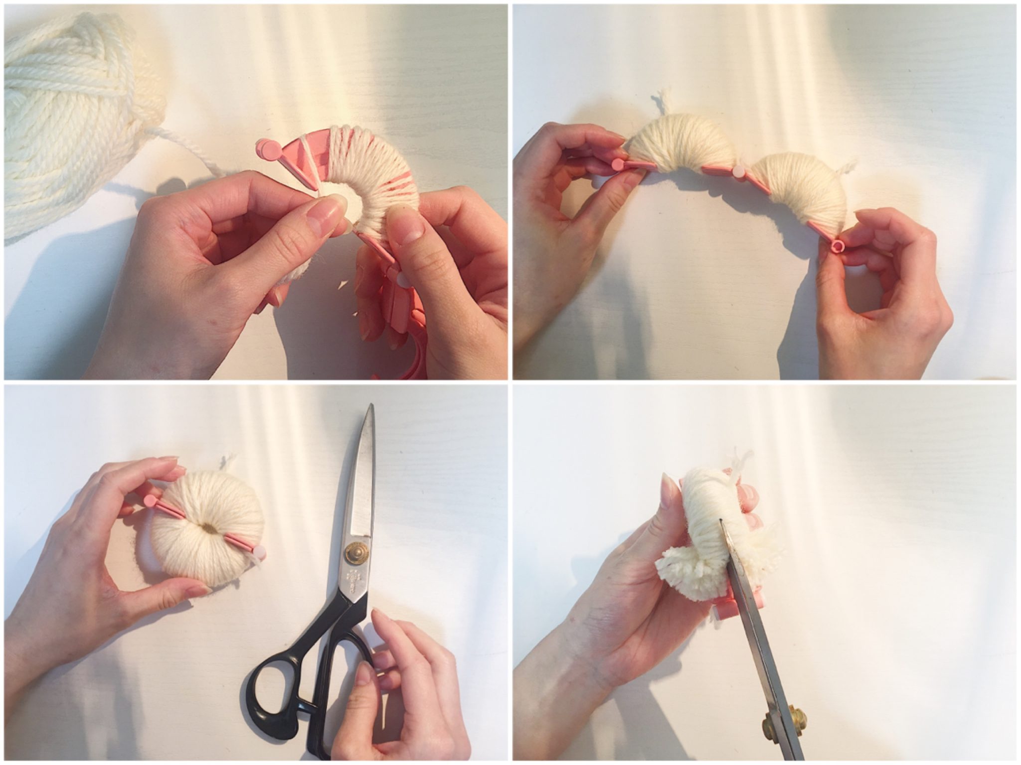 作り方は簡単でポンポンメーカーに毛糸を巻いたら閉じて