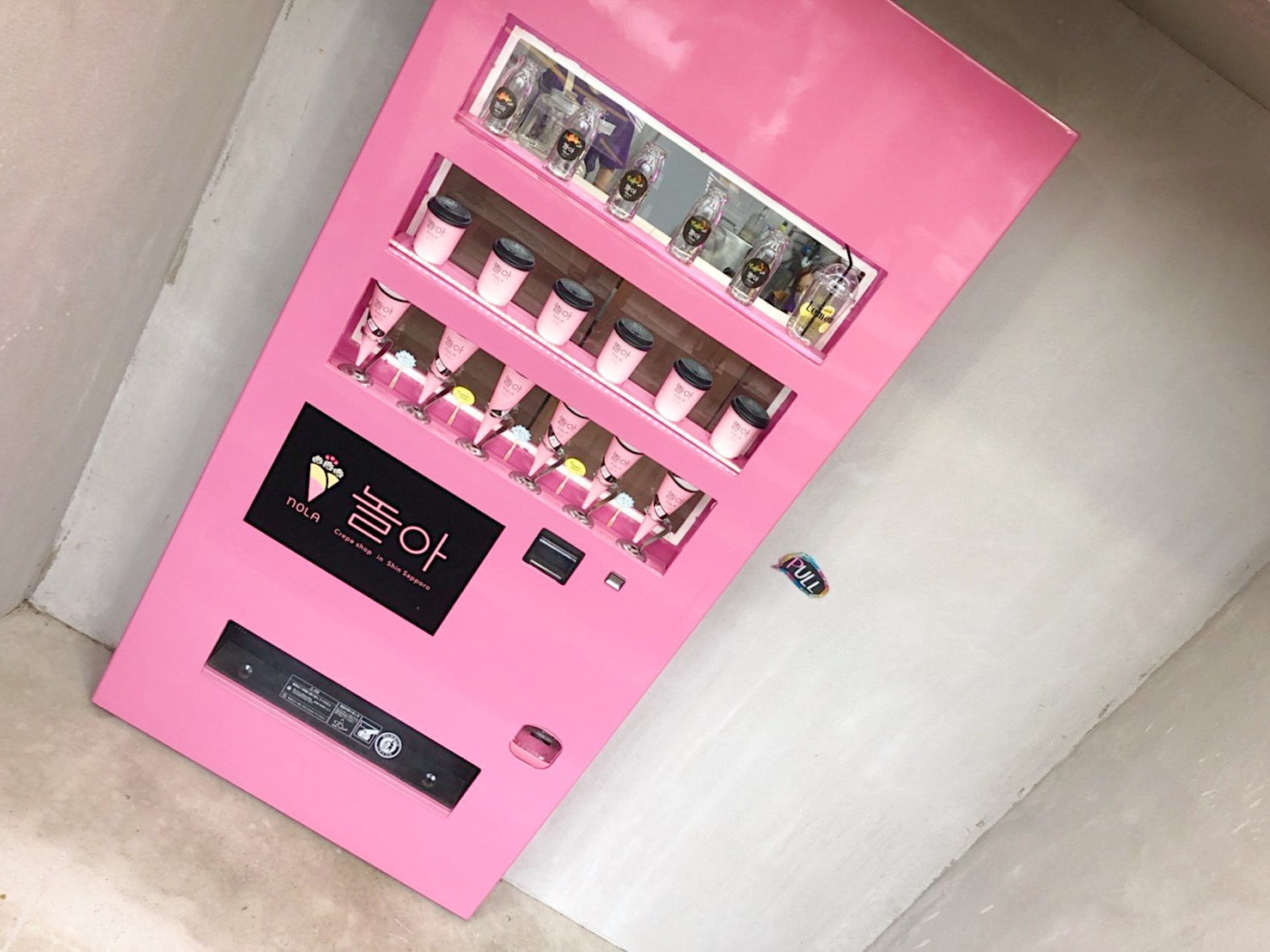 韓国をモチーフにしたお店でピンクの自販機のドアなど写真映えするかわいいお店でした♡