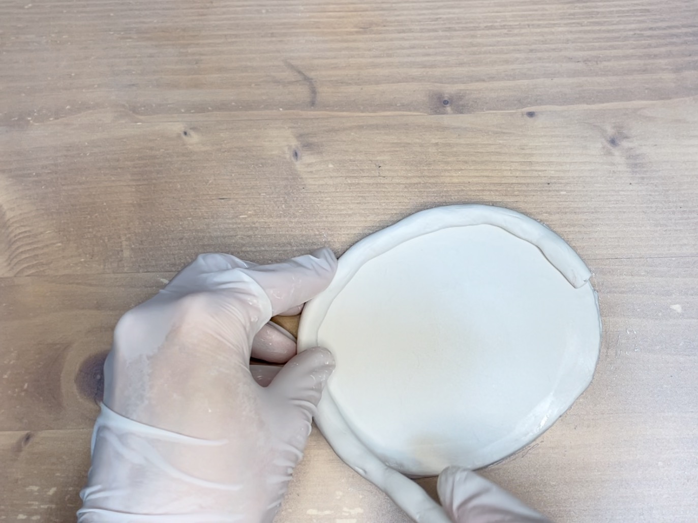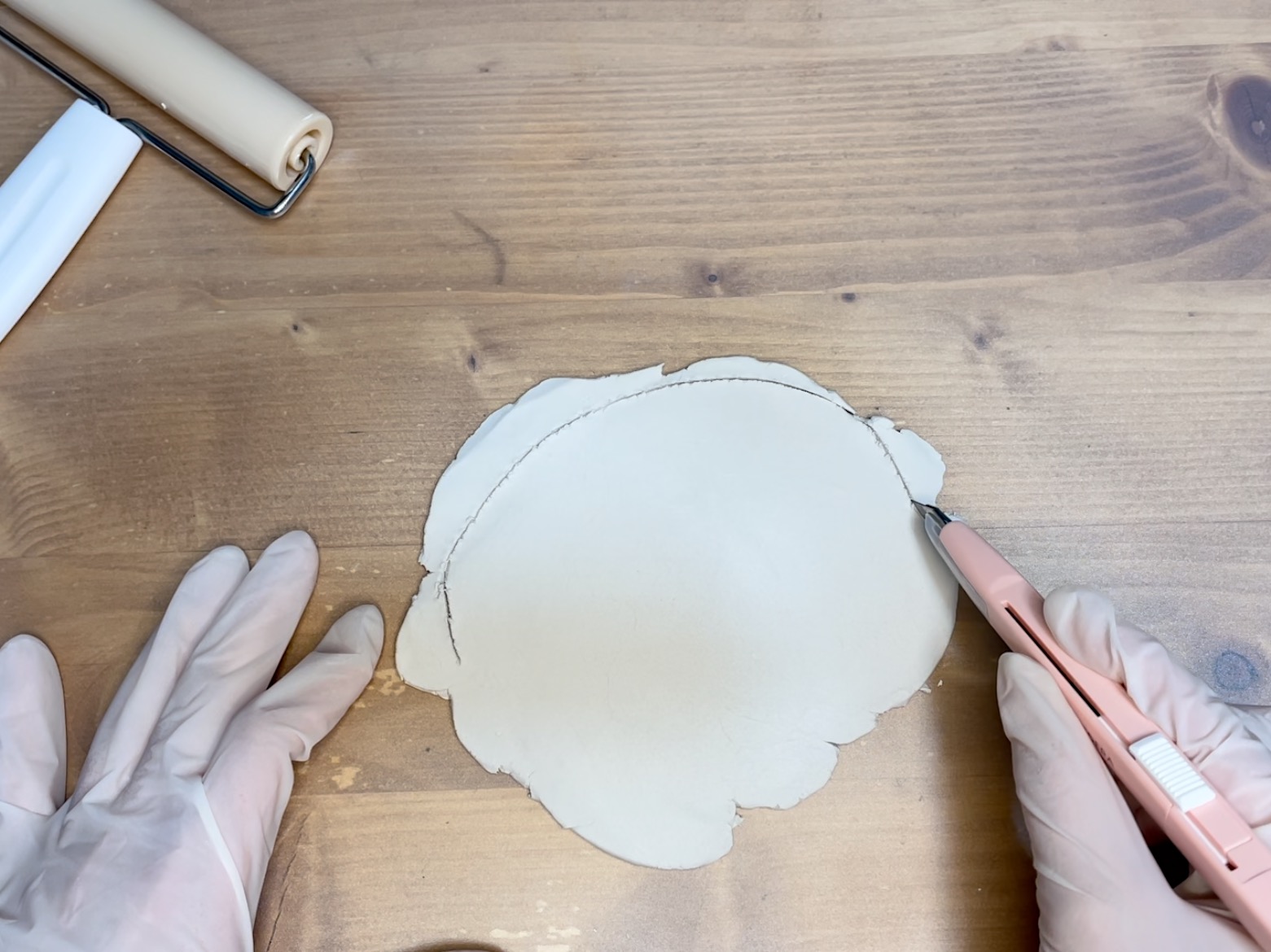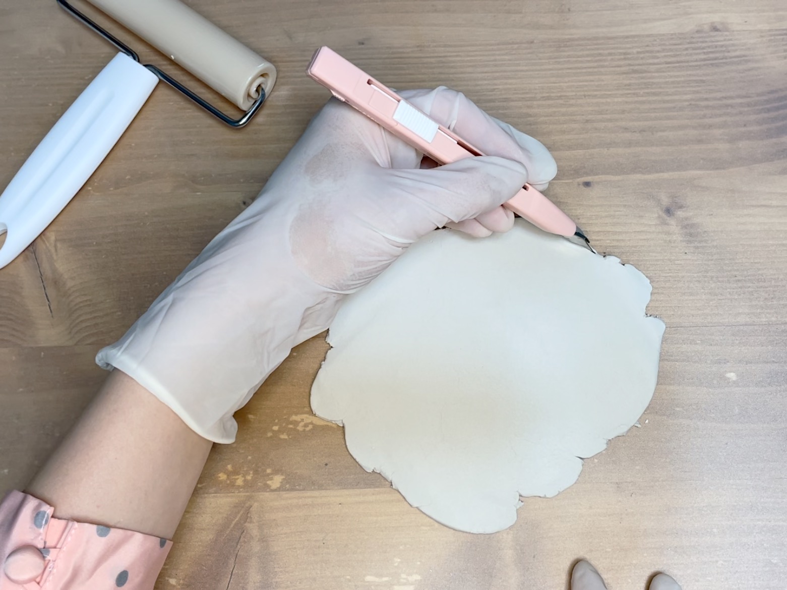 まずは紙粘土を伸ばしてカッターで好きな形にカットします