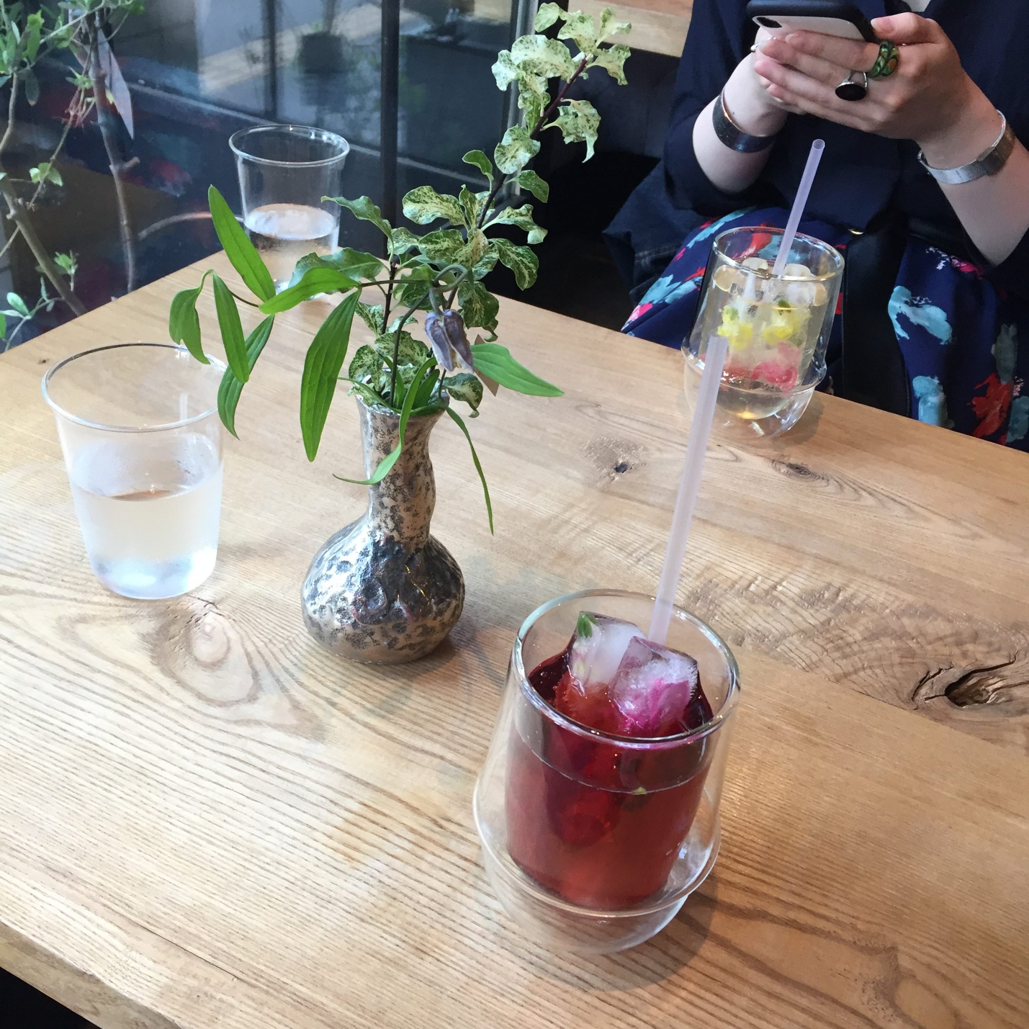 ドリンクにも食用の花が入っていてとても素敵な空間でした♡