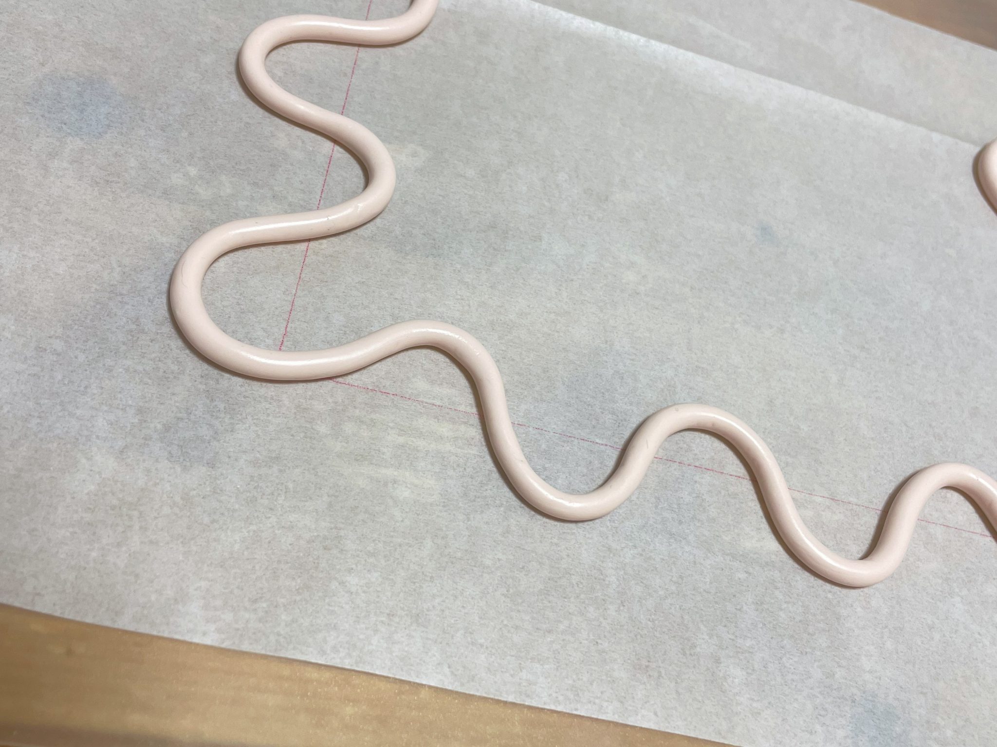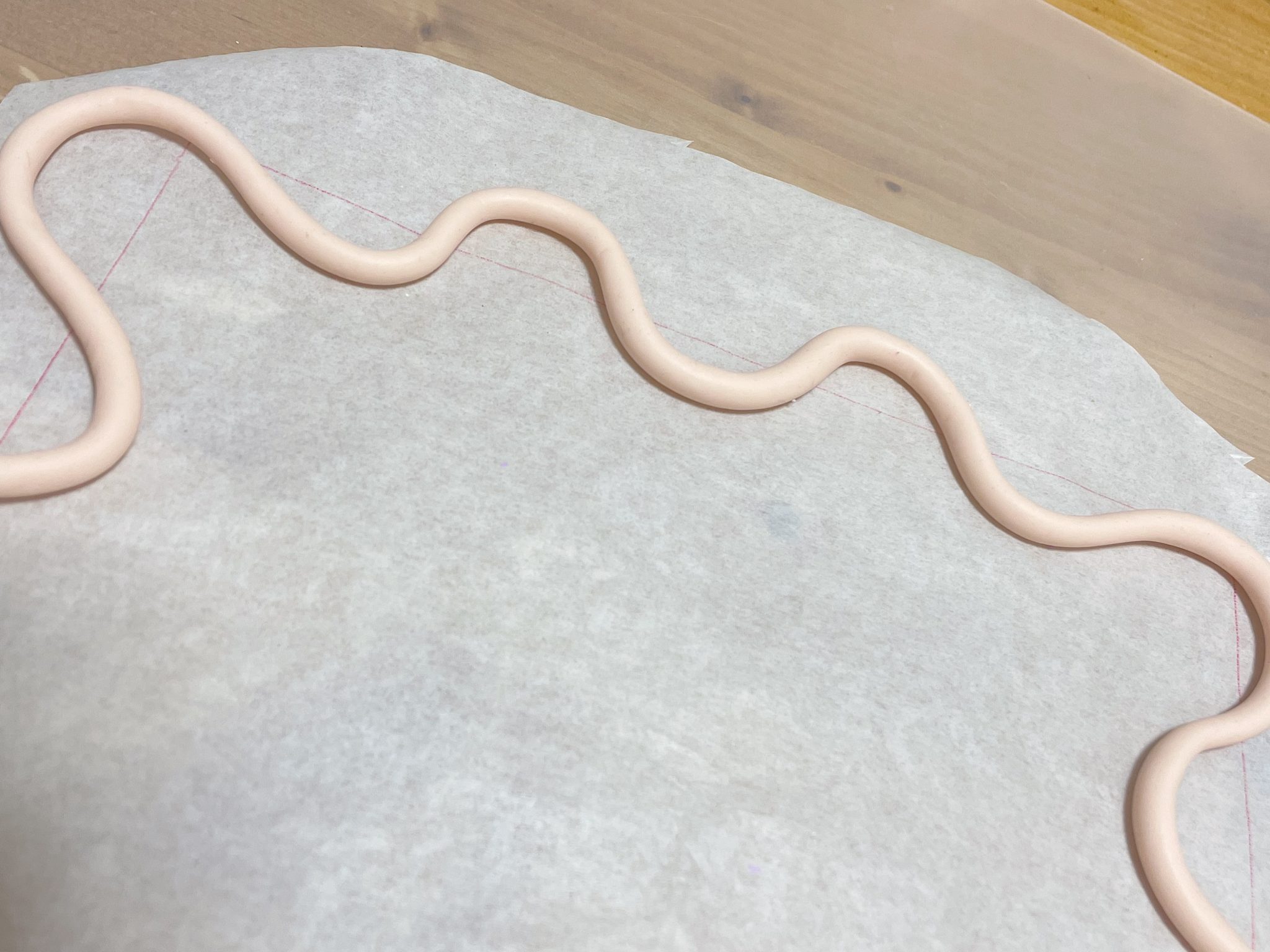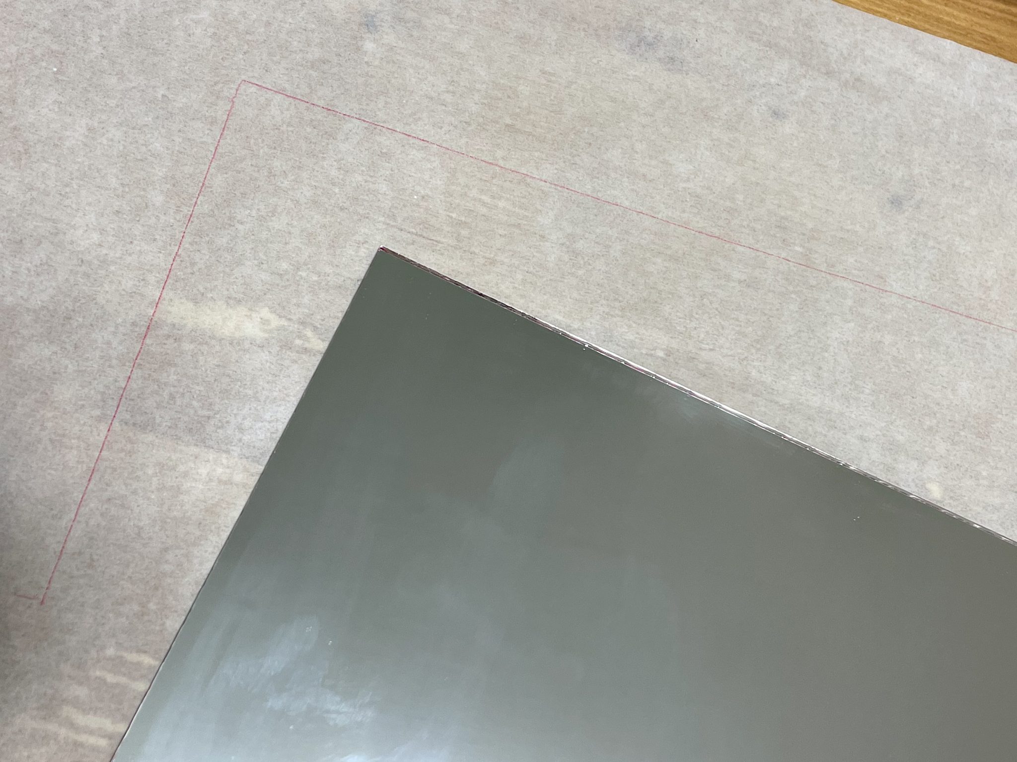 ミラーのサイズをうつしたクッキングシートに合わせて形を作っていきます!