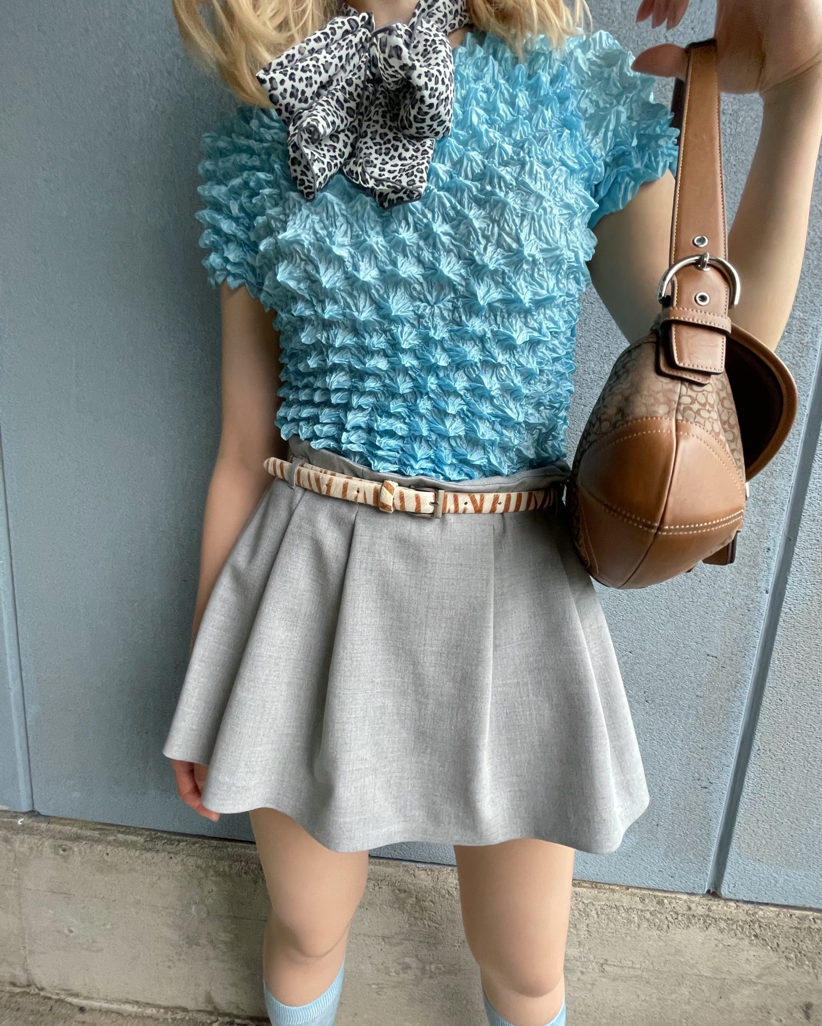 usedのポップコーントップスをメインにグレーとブラウンを合わせてみました