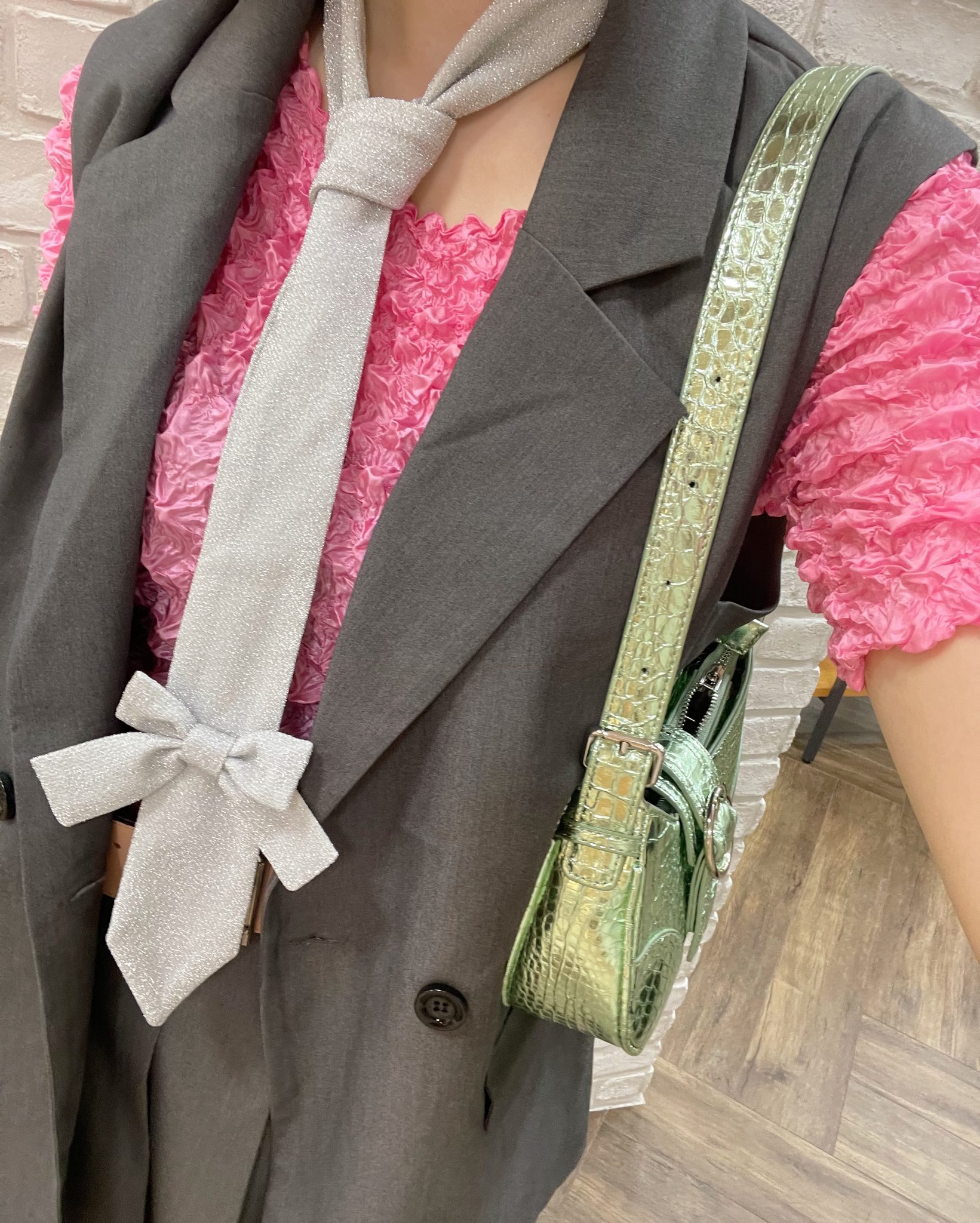 オフィス風ルックが流行していることもありスーツのようなスタイルに合わせたりすることが多いです♡