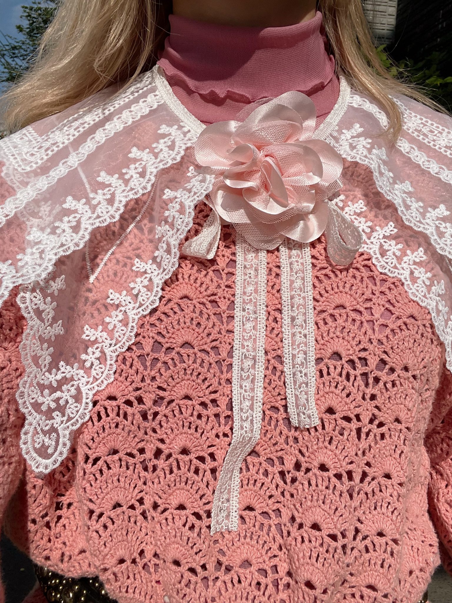 付け襟とコサージュをつけたピンクcode