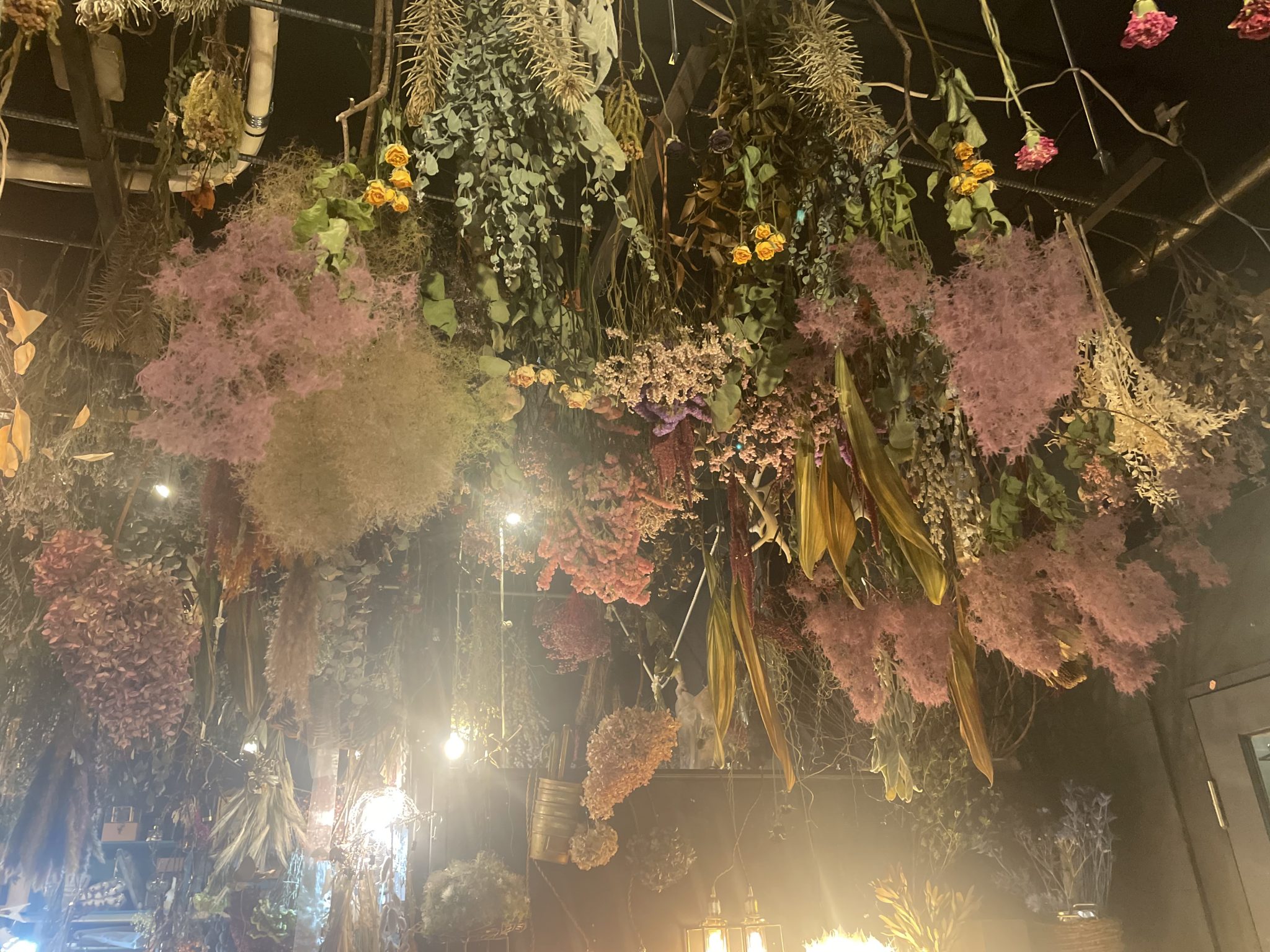 店内は天井いっぱいにドライフラワーがあり素敵な世界観