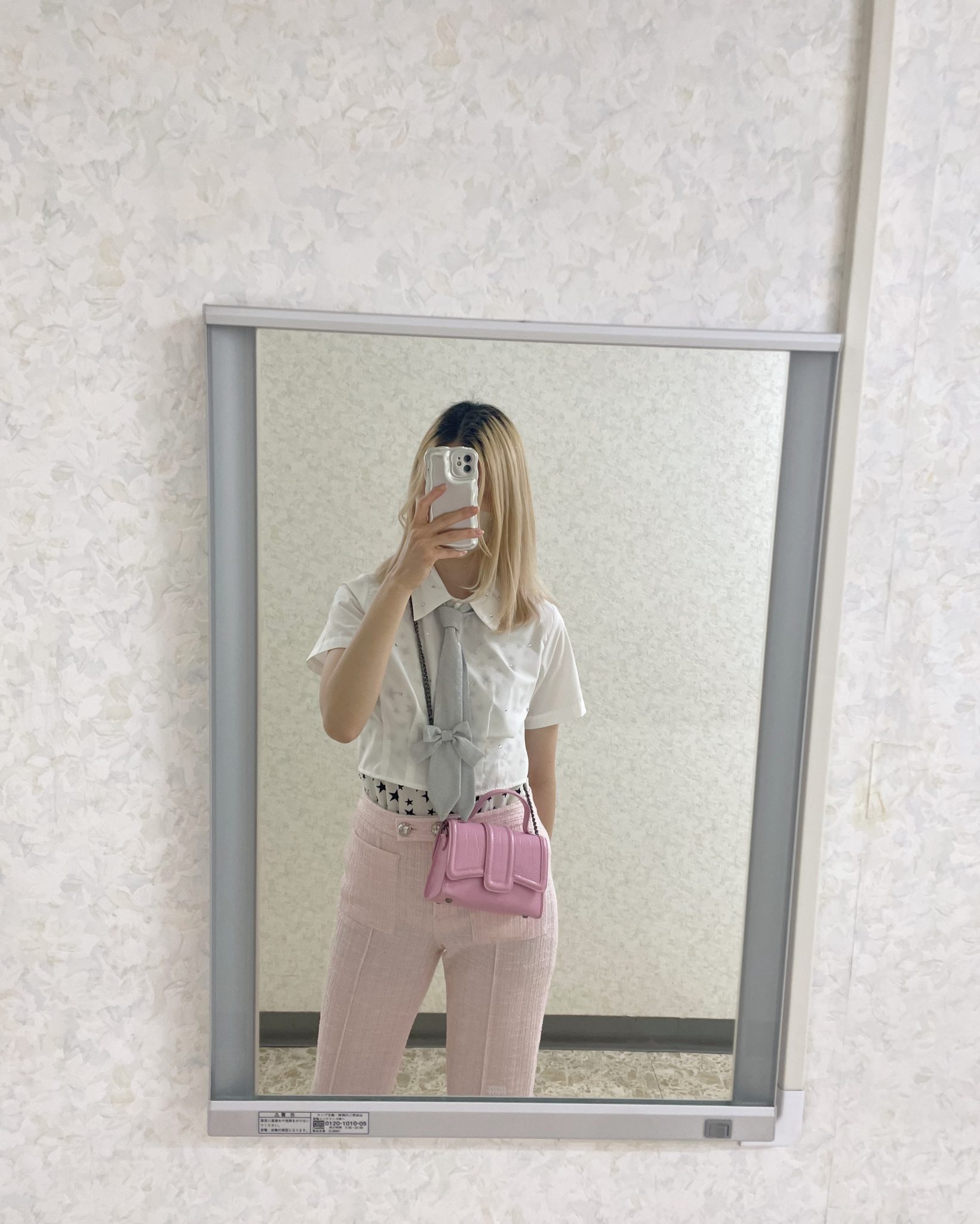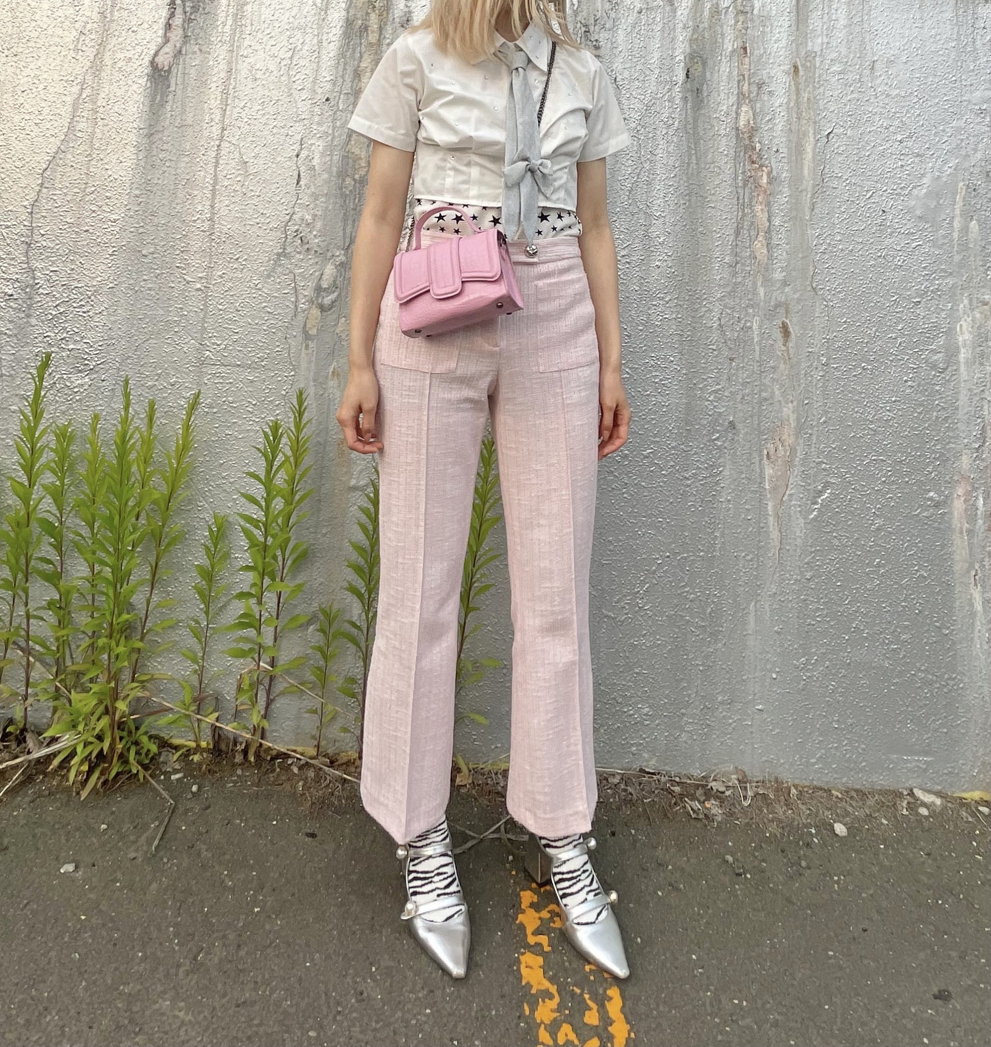 ピンクのパンツはツイード生地がかわいくて購入しました