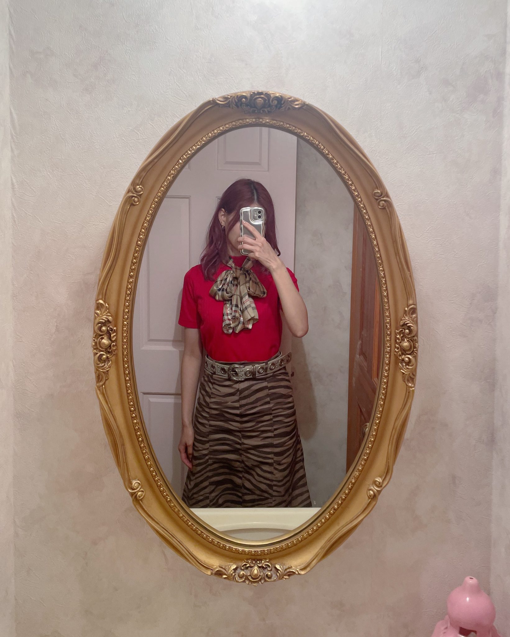 同じトップスでもスカーフを変えるだけで雰囲気が変わるので着回しにはおすすめなitem♡