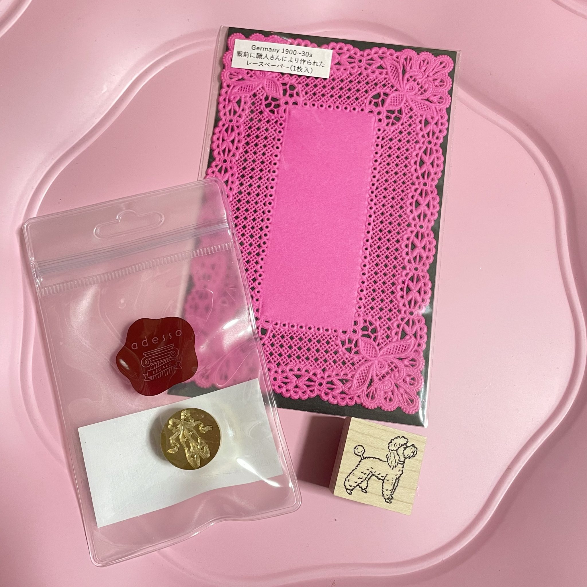 かわいいプードルのスタンプと珍しいカラーのレースペーパー