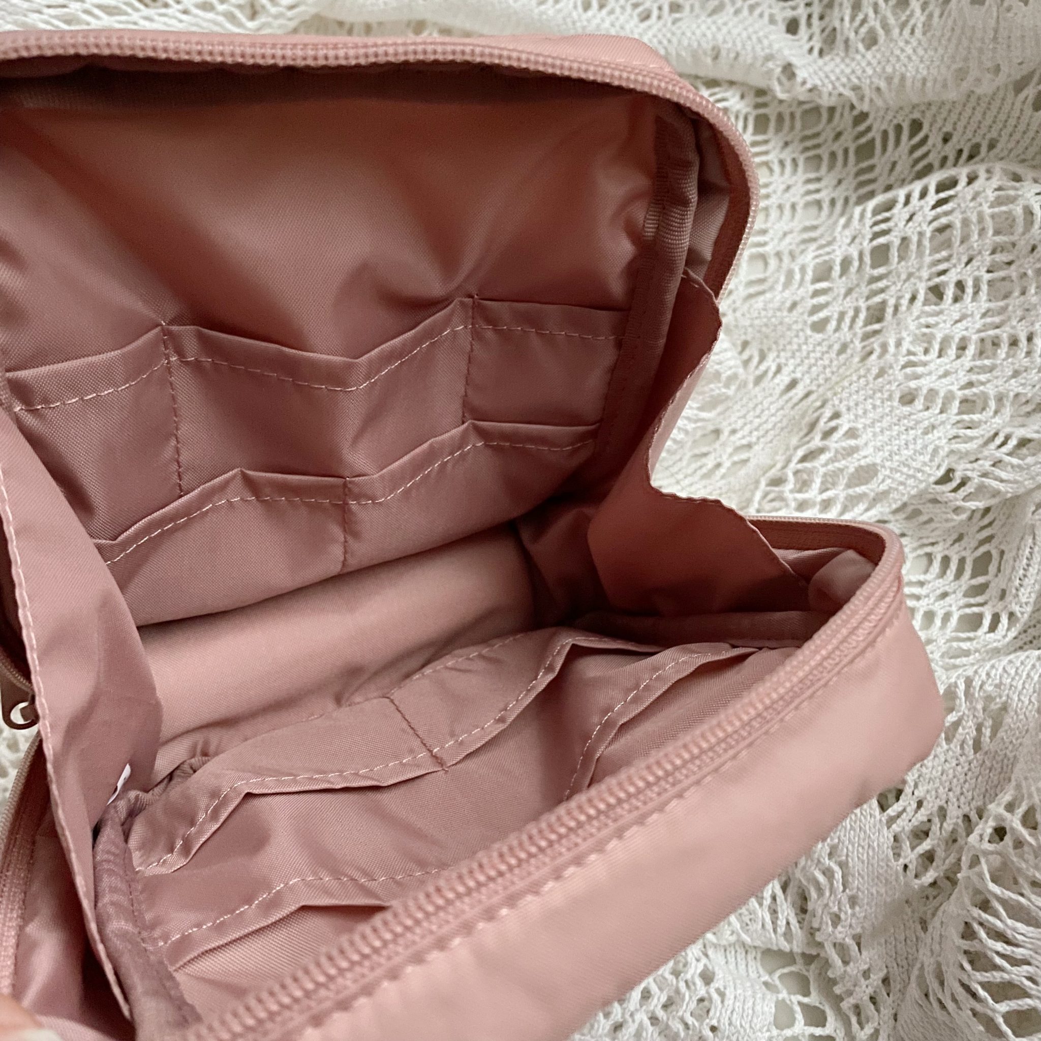 ナイロンメイクポーチのピンクベージュ