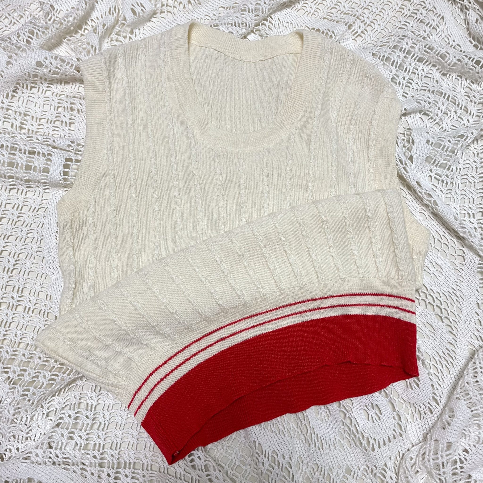 最近ニットベストを探していたのですが赤のラインがかわいいニットを発見しました♪