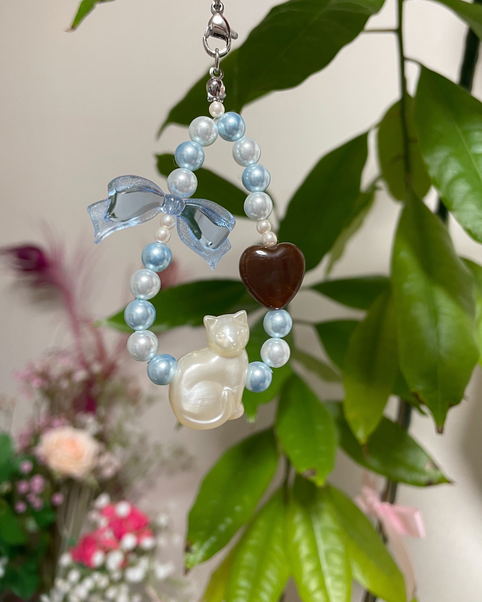 去年購入して使えていなかったかわいいビーズがたくさんあったので猫とリボン、ハートのビーズで作りました♡
