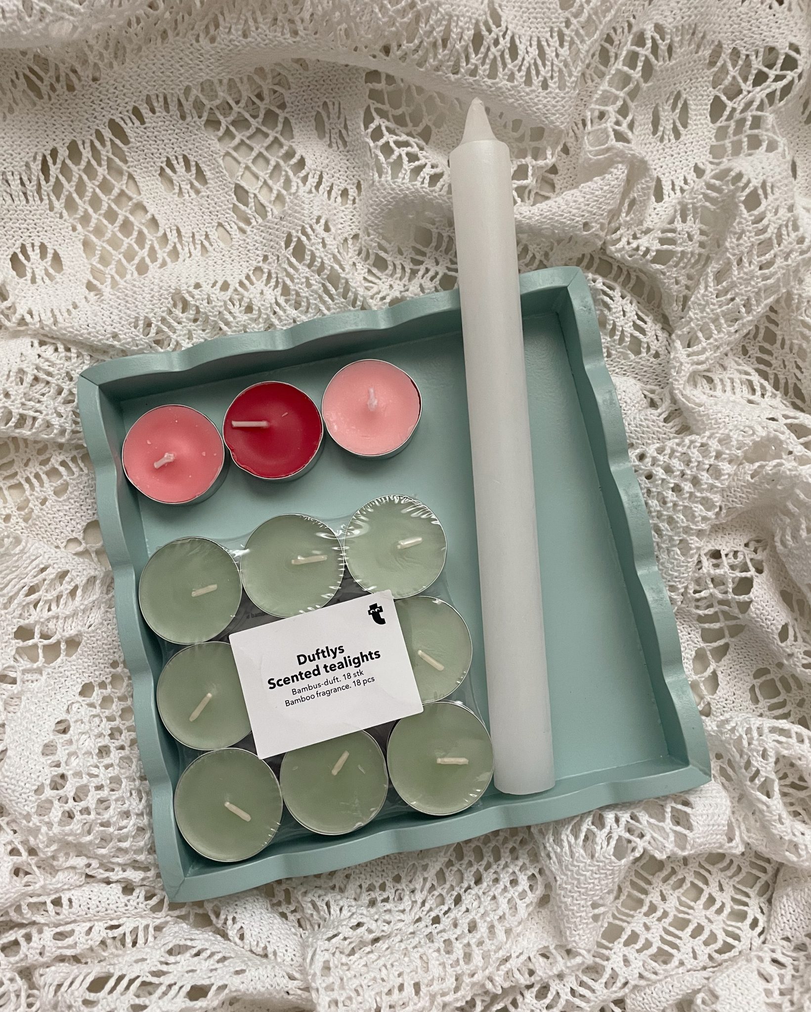 キャンドルとミントグリーンのキャンドルはフライングタイガーで購入しました!