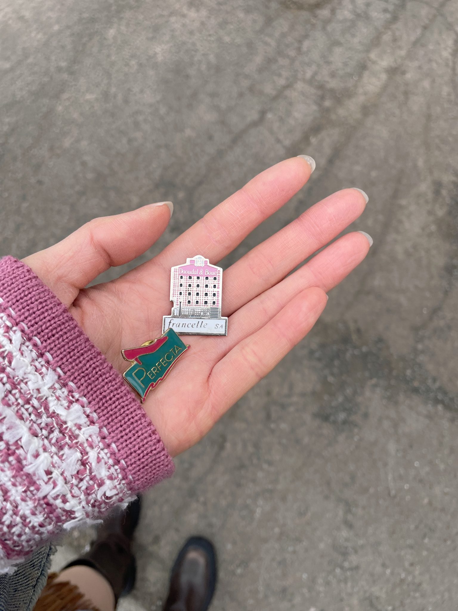 ピンバッジはカバンかジャケットにつけようと思います♡